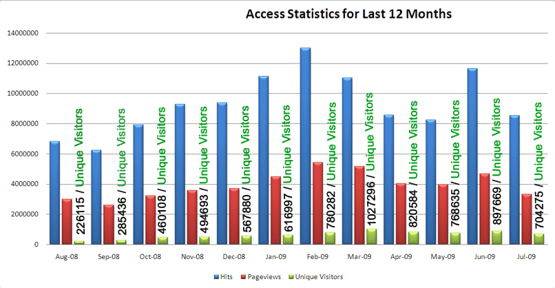 Access Statistics for the last 12 months
